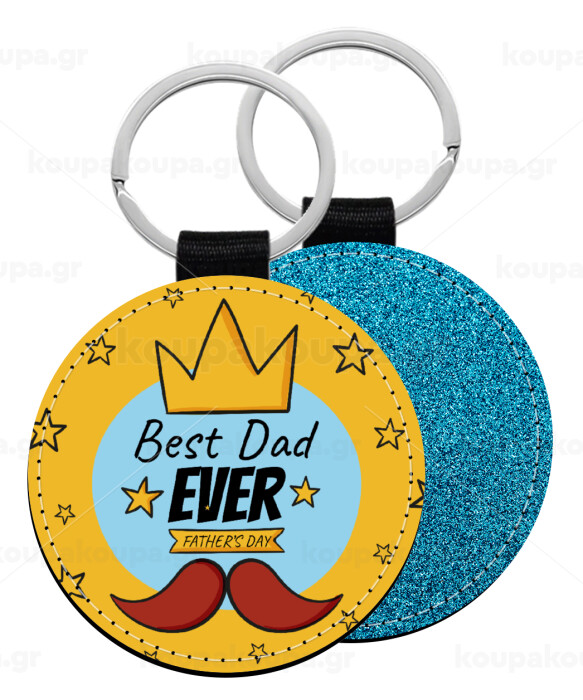 King, Best dad ever, Μπρελόκ Δερματίνη, στρογγυλό ΜΠΛΕ (5cm)