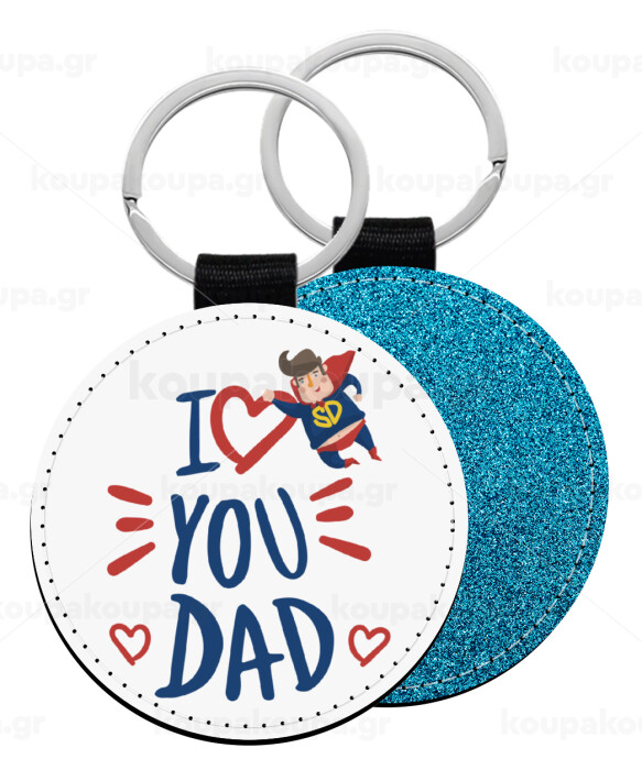 Super Dad, Μπρελόκ Δερματίνη, στρογγυλό ΜΠΛΕ (5cm)