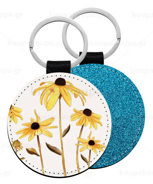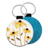 Daisies flower, Μπρελόκ Δερματίνη, στρογγυλό ΜΠΛΕ (5cm)
