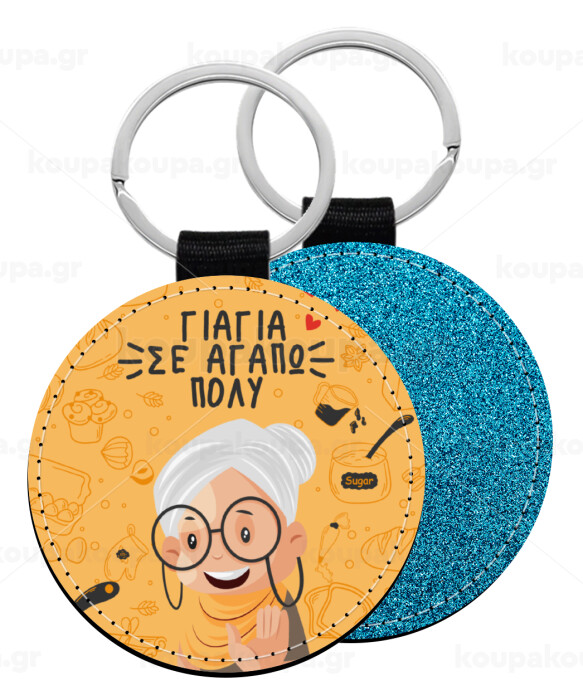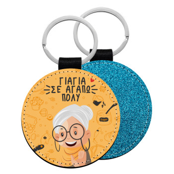Γιαγιά σε αγαπώ πολύ!, Μπρελόκ Δερματίνη, στρογγυλό ΜΠΛΕ (5cm)