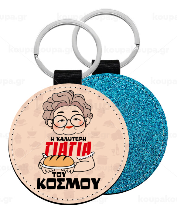 Η καλύτερη γιαγιά του κόσμου!, Μπρελόκ Δερματίνη, στρογγυλό ΜΠΛΕ (5cm)