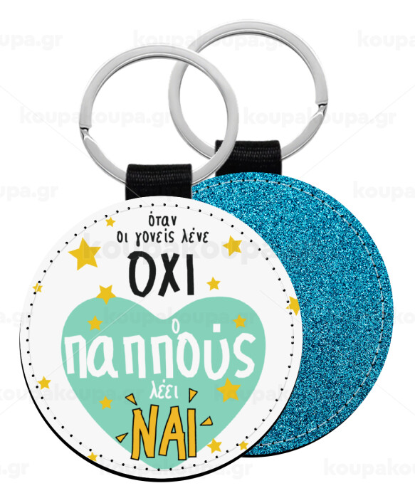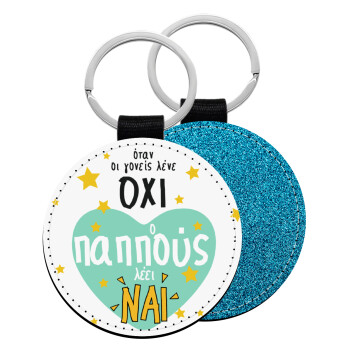 Όταν οι γονείς λένε ΟΧΙ, ο παππούς λέει ΝΑΙ, Μπρελόκ Δερματίνη, στρογγυλό ΜΠΛΕ (5cm)
