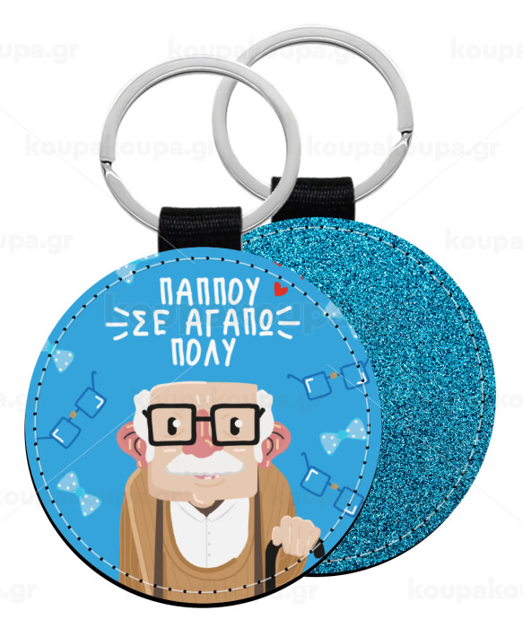 Παππού σε αγαπώ πολύ!, Μπρελόκ Δερματίνη, στρογγυλό ΜΠΛΕ (5cm)