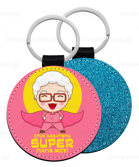 To my best Super Grandma!, Μπρελόκ Δερματίνη, στρογγυλό ΜΠΛΕ (5cm)