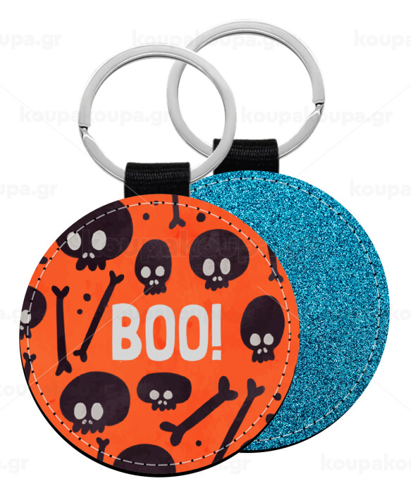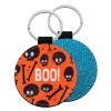 Halloween boo, Μπρελόκ Δερματίνη, στρογγυλό ΜΠΛΕ (5cm)