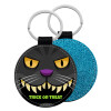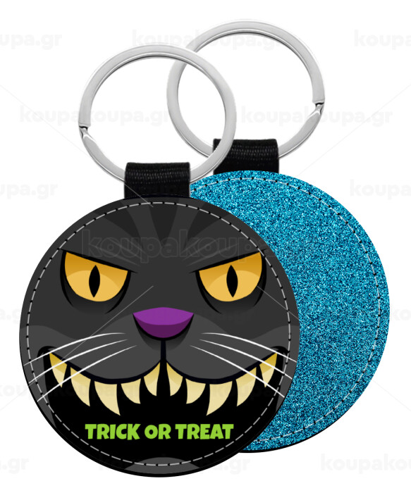 Halloween trick or treat Cat, Μπρελόκ Δερματίνη, στρογγυλό ΜΠΛΕ (5cm)