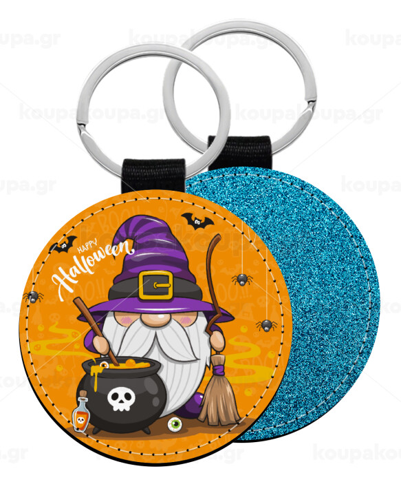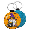 Happy Halloween (Χαλοουίν), Μπρελόκ Δερματίνη, στρογγυλό ΜΠΛΕ (5cm)