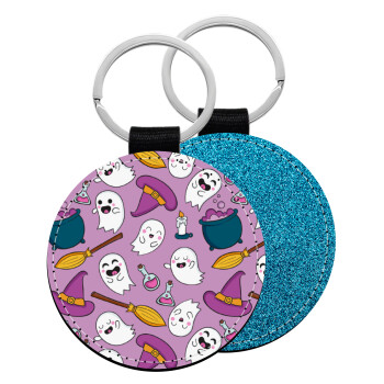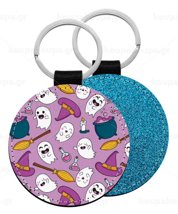 Happy Halloween pink, Μπρελόκ Δερματίνη, στρογγυλό ΜΠΛΕ (5cm)