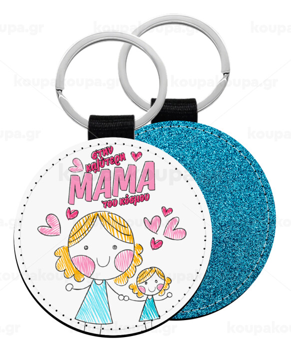 Στην καλύτερη μαμά του κόσμου, comic, Μπρελόκ Δερματίνη, στρογγυλό ΜΠΛΕ (5cm)