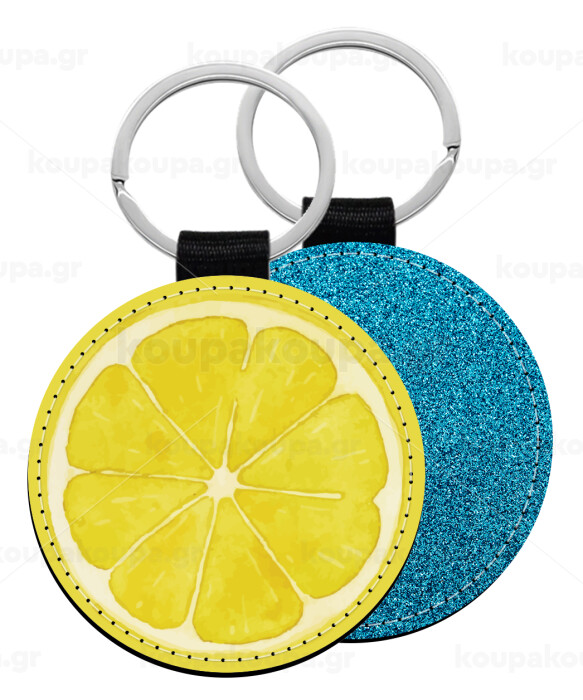 Lemon, Μπρελόκ Δερματίνη, στρογγυλό ΜΠΛΕ (5cm)