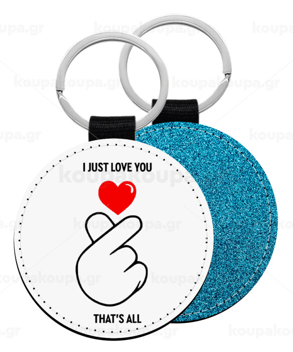 I just love you, that's all., Μπρελόκ Δερματίνη, στρογγυλό ΜΠΛΕ (5cm)