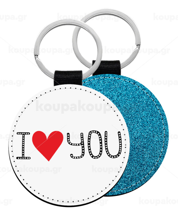 I Love You small dots, Μπρελόκ Δερματίνη, στρογγυλό ΜΠΛΕ (5cm)