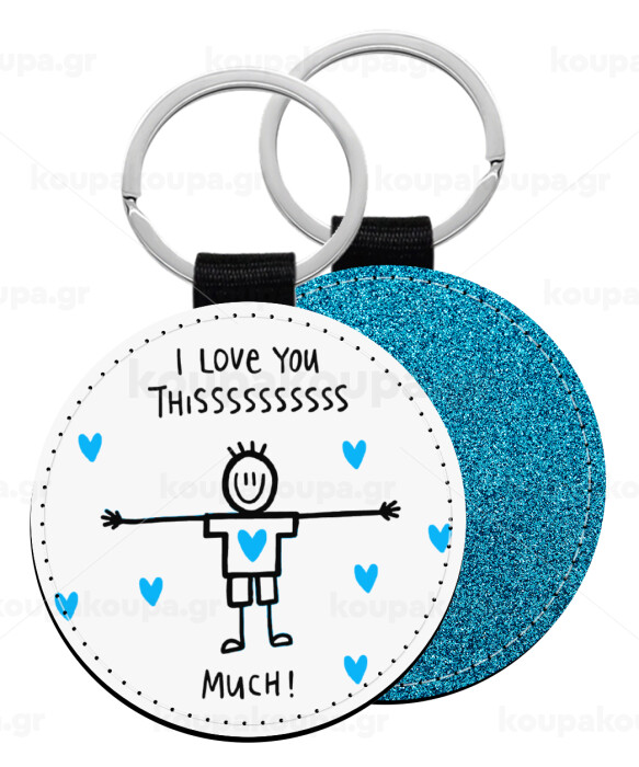 I Love you thissss much (boy)..., Μπρελόκ Δερματίνη, στρογγυλό ΜΠΛΕ (5cm)