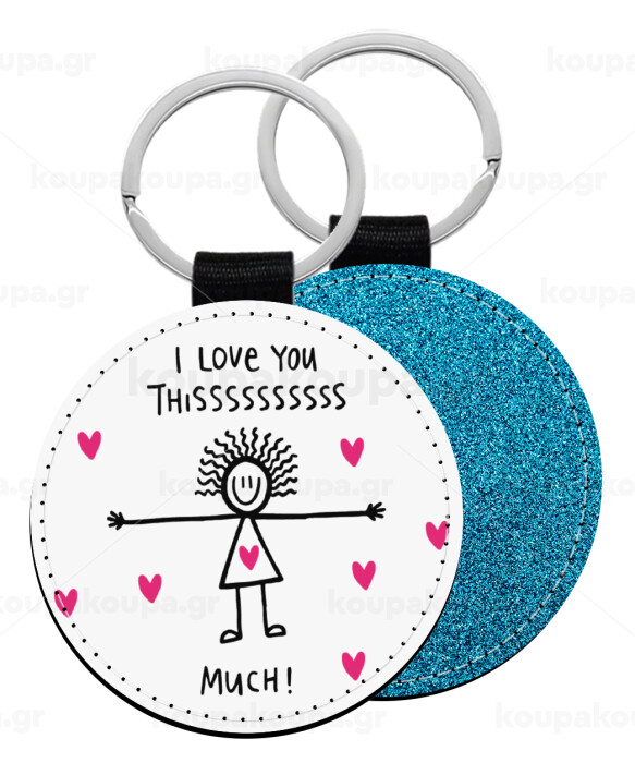 I Love you thissss much..., Μπρελόκ Δερματίνη, στρογγυλό ΜΠΛΕ (5cm)