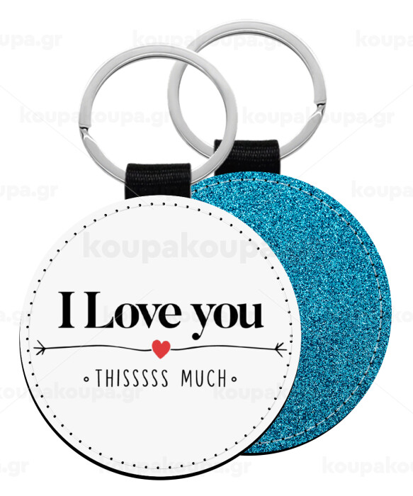 I Love you thisssss much, Μπρελόκ Δερματίνη, στρογγυλό ΜΠΛΕ (5cm)