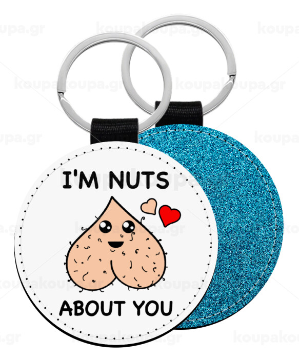 I'm Nuts About You, Μπρελόκ Δερματίνη, στρογγυλό ΜΠΛΕ (5cm)