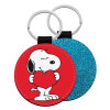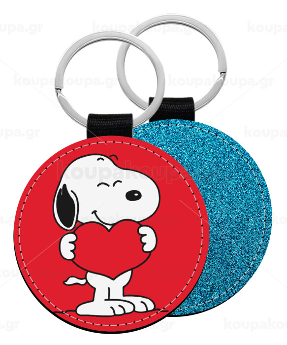 Snoopy takemy heart, Μπρελόκ Δερματίνη, στρογγυλό ΜΠΛΕ (5cm)
