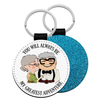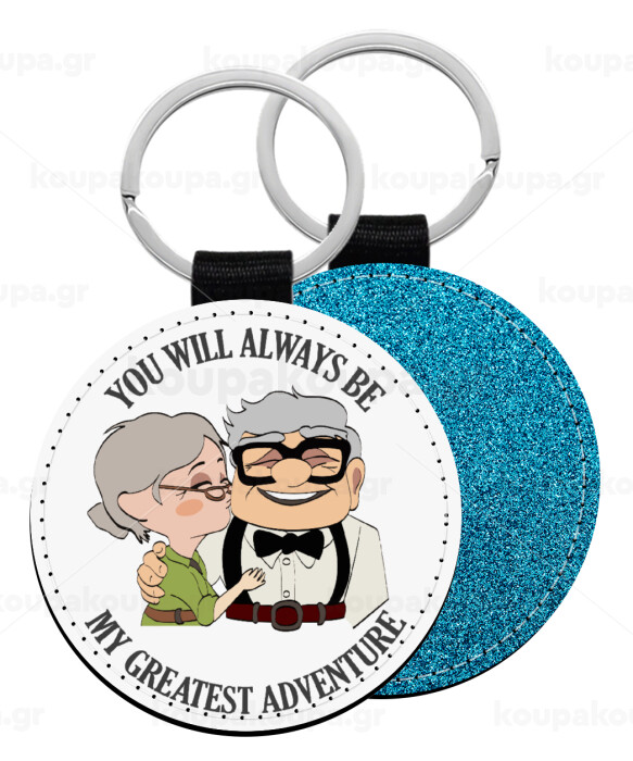 UP, YOU WILL ALWAYS BE MY GREATEST ADVENTURE, Μπρελόκ Δερματίνη, στρογγυλό ΜΠΛΕ (5cm)