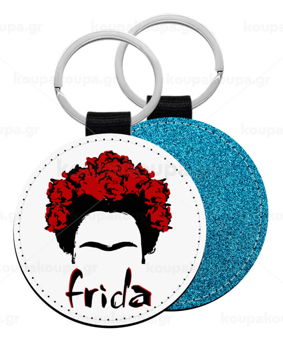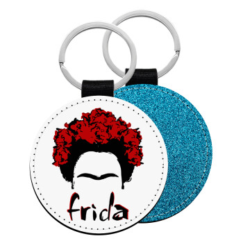 Frida, Μπρελόκ Δερματίνη, στρογγυλό ΜΠΛΕ (5cm)