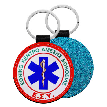 ΕΚΑΒ, Μπρελόκ Δερματίνη, στρογγυλό ΜΠΛΕ (5cm)