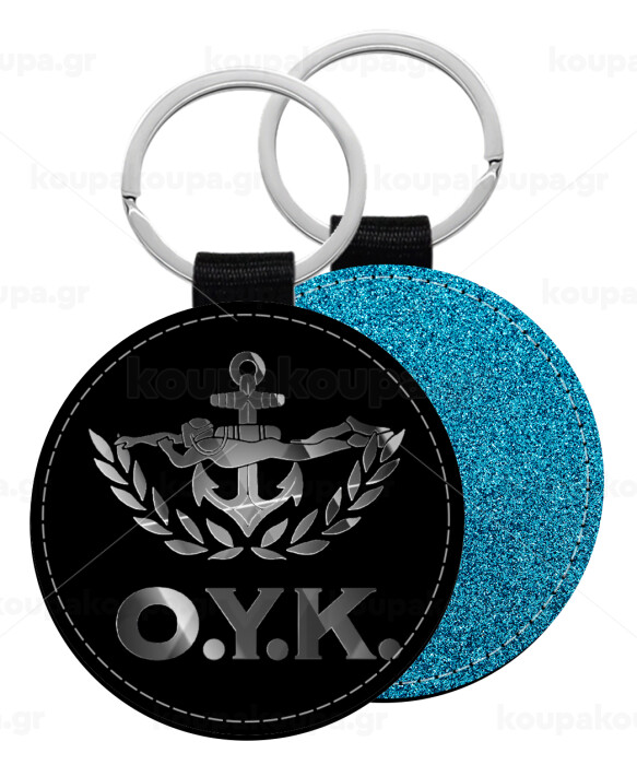 Ο.Υ.Κ., Μπρελόκ Δερματίνη, στρογγυλό ΜΠΛΕ (5cm)