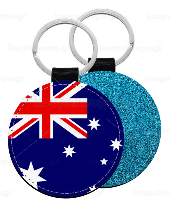 Australia flag, Μπρελόκ Δερματίνη, στρογγυλό ΜΠΛΕ (5cm)