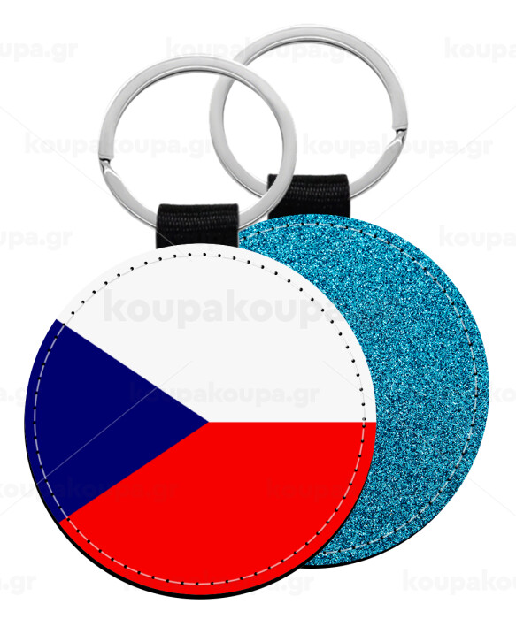 Czechia flag, Μπρελόκ Δερματίνη, στρογγυλό ΜΠΛΕ (5cm)