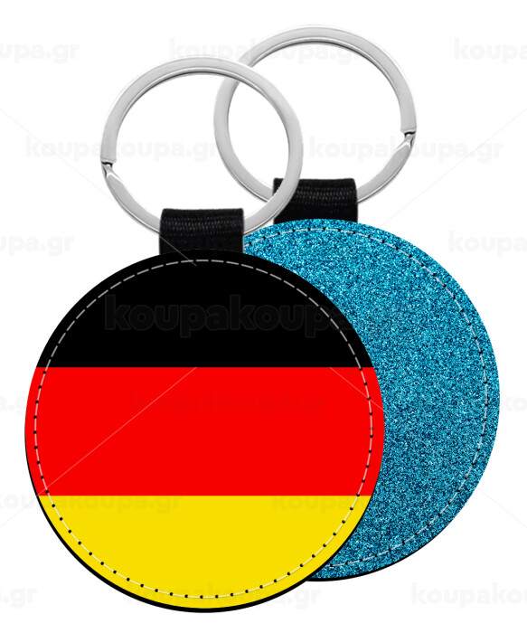Germany flag, Μπρελόκ Δερματίνη, στρογγυλό ΜΠΛΕ (5cm)