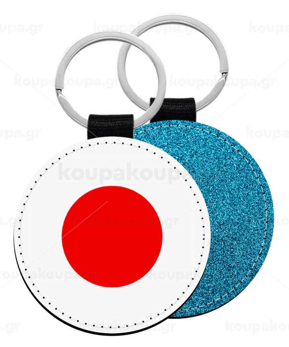 Japan flag, Μπρελόκ Δερματίνη, στρογγυλό ΜΠΛΕ (5cm)