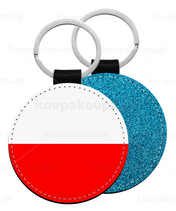 Poland flag, Μπρελόκ Δερματίνη, στρογγυλό ΜΠΛΕ (5cm)
