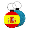 Spain flag, Μπρελόκ Δερματίνη, στρογγυλό ΜΠΛΕ (5cm)