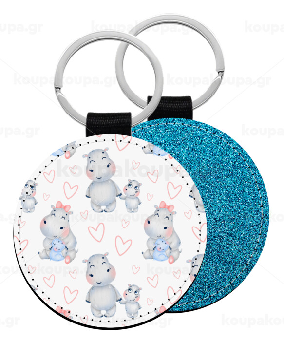 Hippo, Μπρελόκ Δερματίνη, στρογγυλό ΜΠΛΕ (5cm)