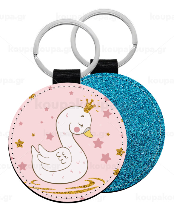 Crowned swan, Μπρελόκ Δερματίνη, στρογγυλό ΜΠΛΕ (5cm)
