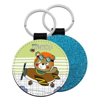 Kids Plane, Μπρελόκ Δερματίνη, στρογγυλό ΜΠΛΕ (5cm)