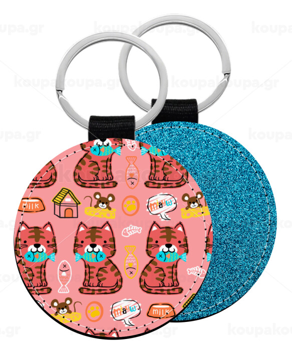 Cats and Fishes, Μπρελόκ Δερματίνη, στρογγυλό ΜΠΛΕ (5cm)