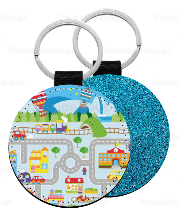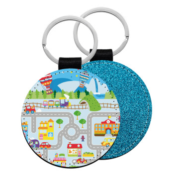 City road track maps, Μπρελόκ Δερματίνη, στρογγυλό ΜΠΛΕ (5cm)