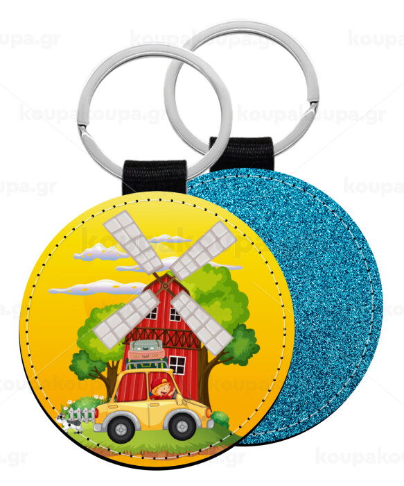 Toy car, Μπρελόκ Δερματίνη, στρογγυλό ΜΠΛΕ (5cm)