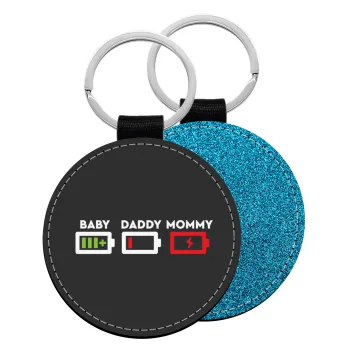 BABY, MOMMY, DADDY Low battery, Μπρελόκ Δερματίνη, στρογγυλό ΜΠΛΕ (5cm)
