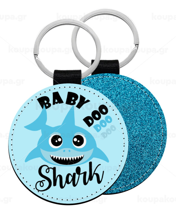 Baby Shark (boy), Μπρελόκ Δερματίνη, στρογγυλό ΜΠΛΕ (5cm)