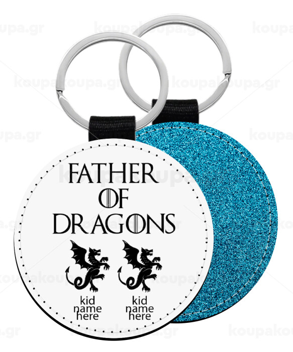 GOT, Father of Dragons (με ονόματα παιδικά), Μπρελόκ Δερματίνη, στρογγυλό ΜΠΛΕ (5cm)