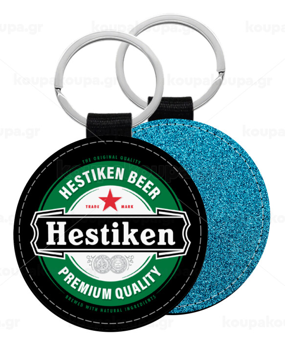 Hestiken Beer, Μπρελόκ Δερματίνη, στρογγυλό ΜΠΛΕ (5cm)