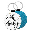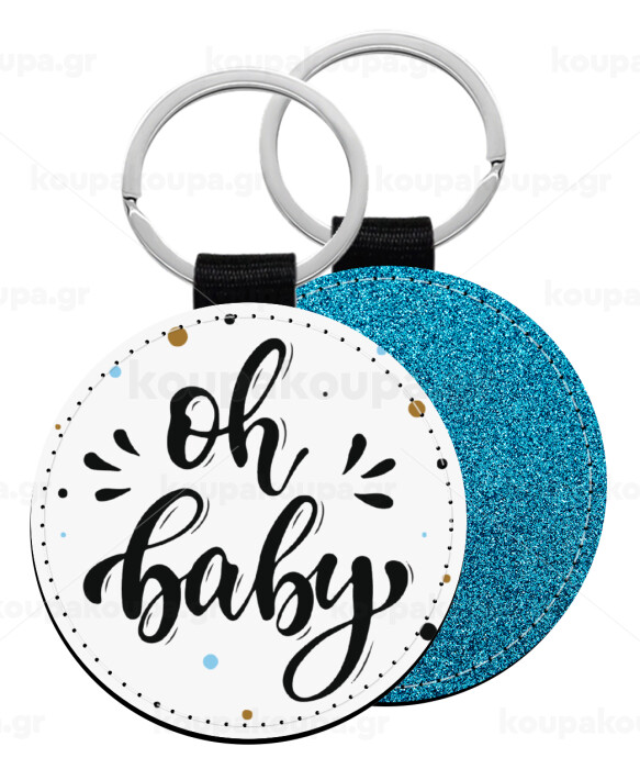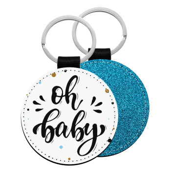 Oh baby, Μπρελόκ Δερματίνη, στρογγυλό ΜΠΛΕ (5cm)
