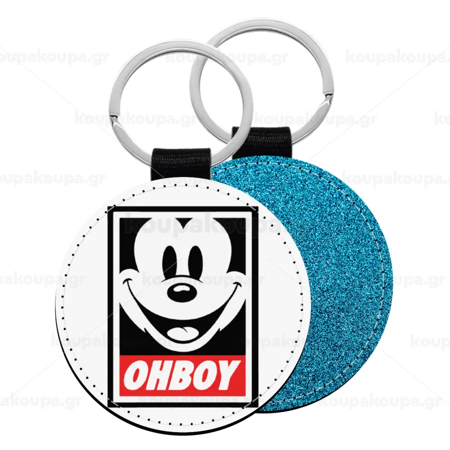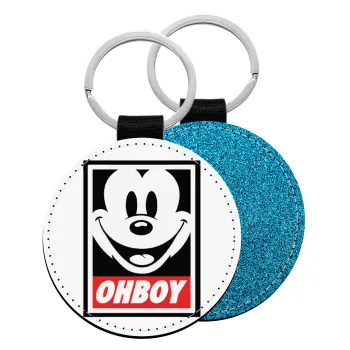 Oh boy μίκυ, Μπρελόκ Δερματίνη, στρογγυλό ΜΠΛΕ (5cm)