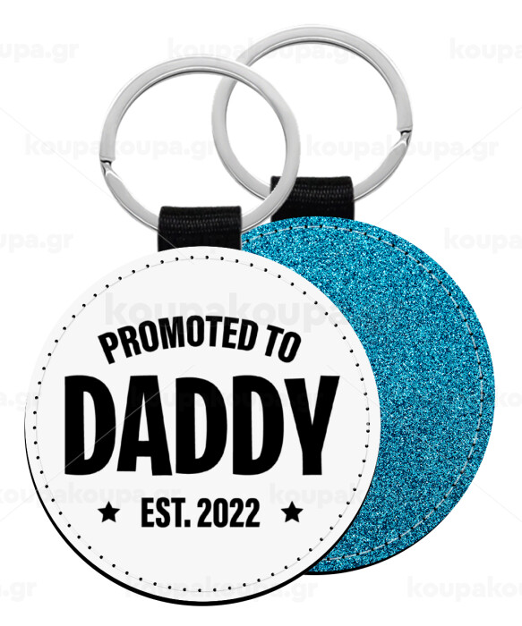 Promoted to Daddy, Μπρελόκ Δερματίνη, στρογγυλό ΜΠΛΕ (5cm)