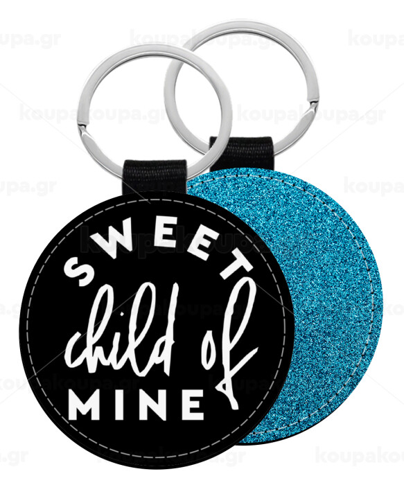 Sweet child of mine!, Μπρελόκ Δερματίνη, στρογγυλό ΜΠΛΕ (5cm)