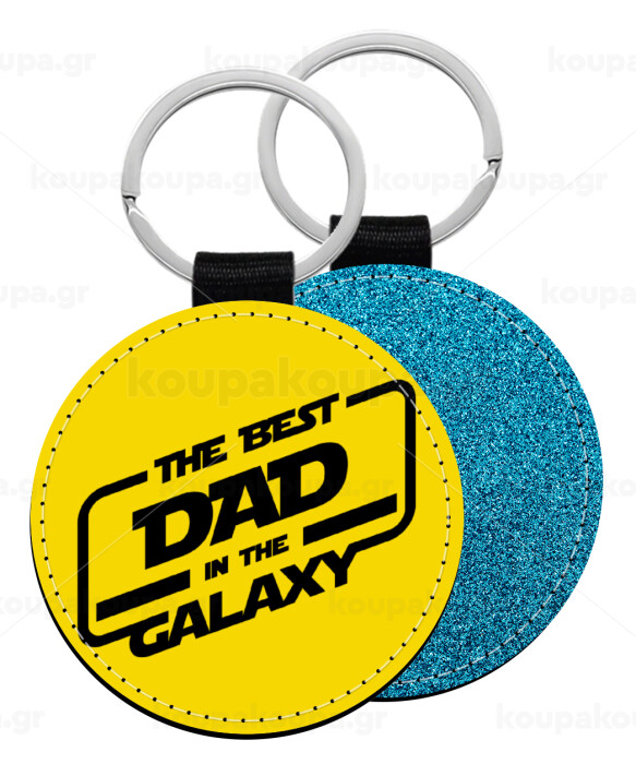 The Best DAD in the Galaxy, Μπρελόκ Δερματίνη, στρογγυλό ΜΠΛΕ (5cm)