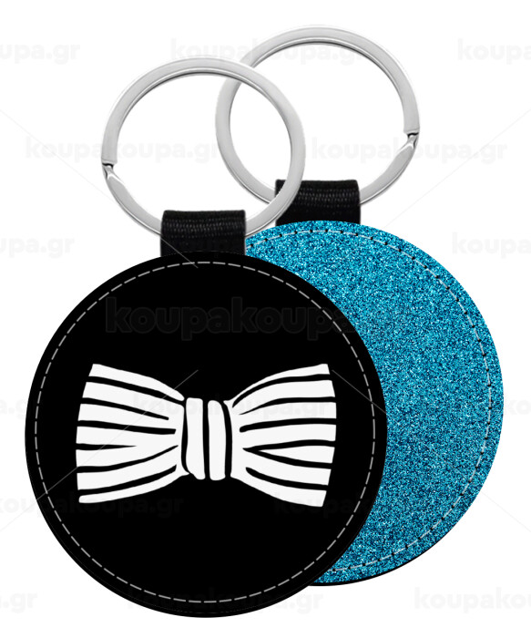Bow tie, Μπρελόκ Δερματίνη, στρογγυλό ΜΠΛΕ (5cm)