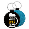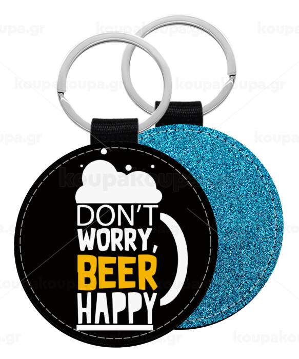 Don't worry BEER Happy, Μπρελόκ Δερματίνη, στρογγυλό ΜΠΛΕ (5cm)