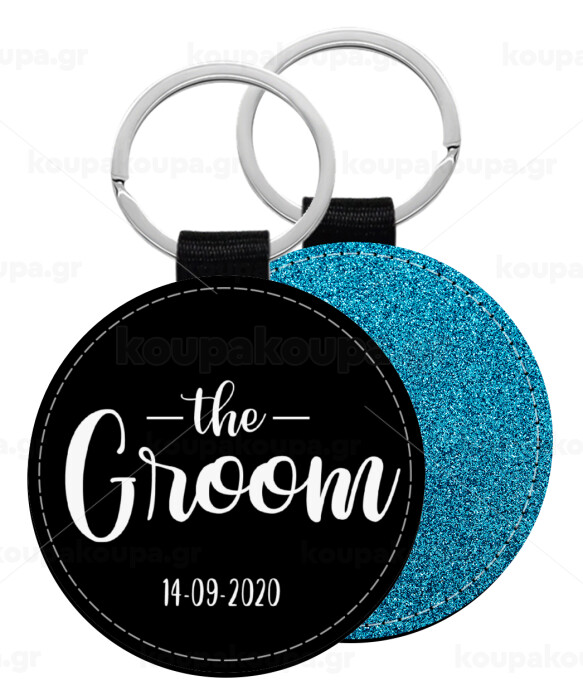 Groom & Bride (Groom), Μπρελόκ Δερματίνη, στρογγυλό ΜΠΛΕ (5cm)