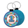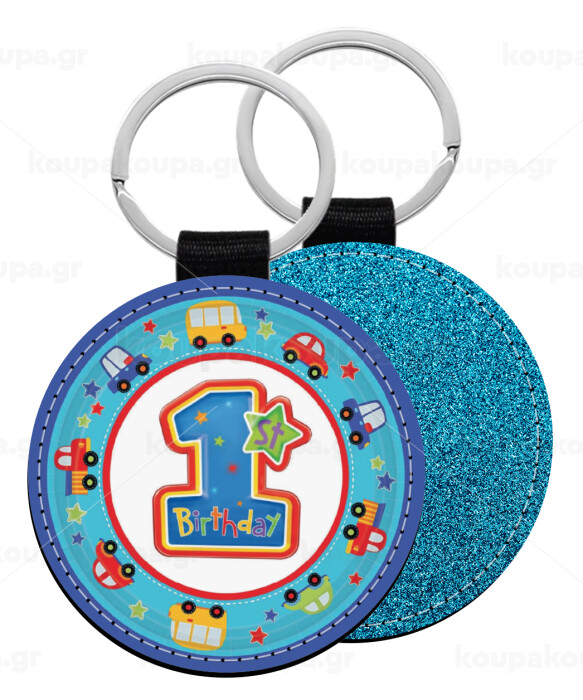 Happy 1st Birthday, Μπρελόκ Δερματίνη, στρογγυλό ΜΠΛΕ (5cm)
